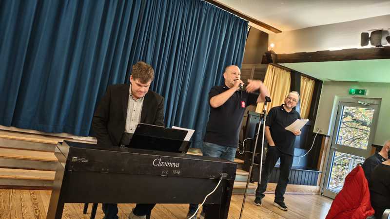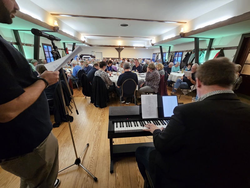 Ein gut aufgelegtes Publikum lauschte den beiden Stücken, die wir vor den Mitsing-Blöcken vortrugen, bevor es auch für unsere Gäste hieß: Sing mit!